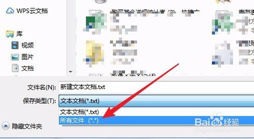 在弹出的另存为窗口中,我们点击下面的“保存类型”下拉按钮,在弹出菜单中选择“所有文件”菜单项。