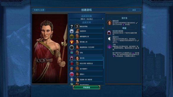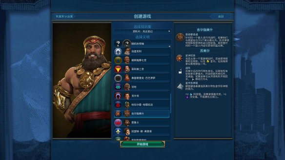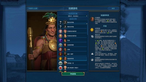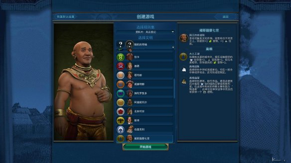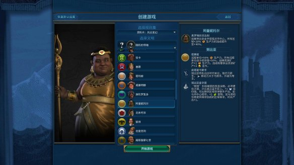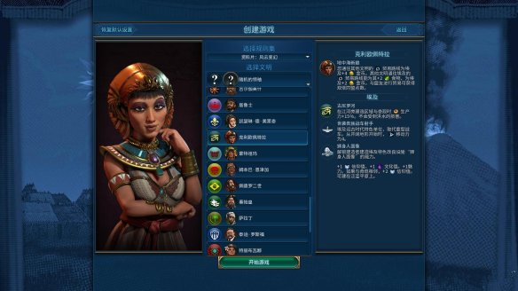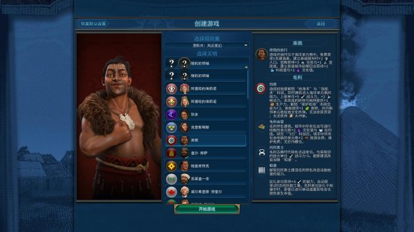 库佩的航行:游戏开始时位于海洋单元格中。免费获得1名建造者,建立首座城市时+1人口。宫殿获得+3住房与+1宜居度。建立首座城市前每回合获得+2科技值与+2文化值。
