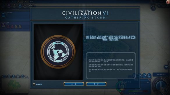 在世界会议中,玩家可以向其他文明发出自己的声音。其也是新外交胜利的重要组成部分。提案会以两种形式提交至世界议会等待投票:决议与议案。