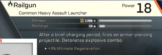 之后,解说展示了另一把武器。白色普通电磁炮(Railgun)。虽然属性全面落后,但值得注意的是这把枪所带有的‘引爆’图标。表示它可以用来作为Combo攻击系统的引爆器。