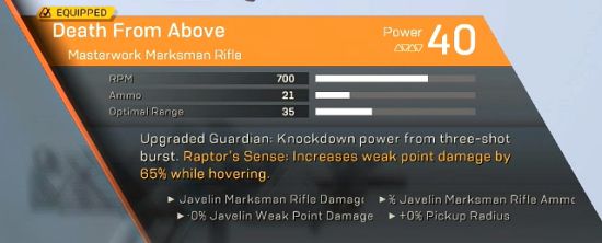 死从天降(Death From Above)大师级射手步枪:悬空时弱点攻击伤害提高65%