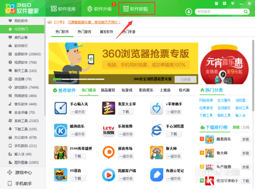1、首先我们打开我们的360软件,如果我们没有这个软件的话,我们也是可以自己下载的,或者我们可以使用其他的软件管理应用,这里根据大家自己电脑上面安装的来决定吧。我们就使用360试一试吧。