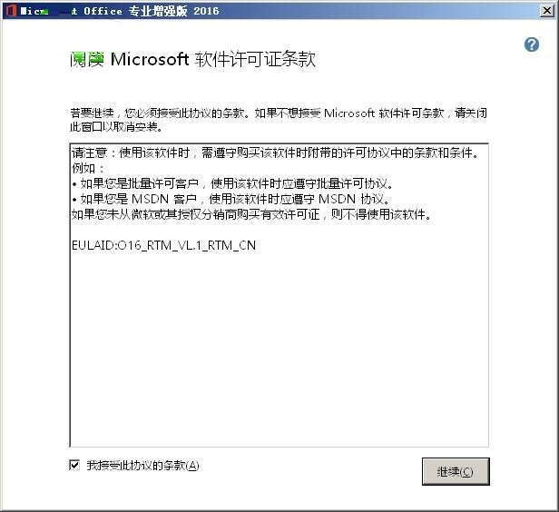 2、安装程序正在准备文件,然后就会出现office2016的协议了,选择我接受此协议的条款
