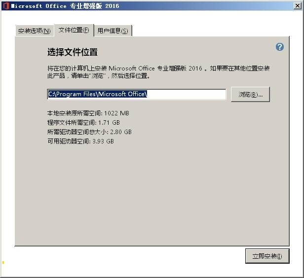5、点击文件位置可以选择安装目录,默认为“C:\Program Files\Microsoft Office\”