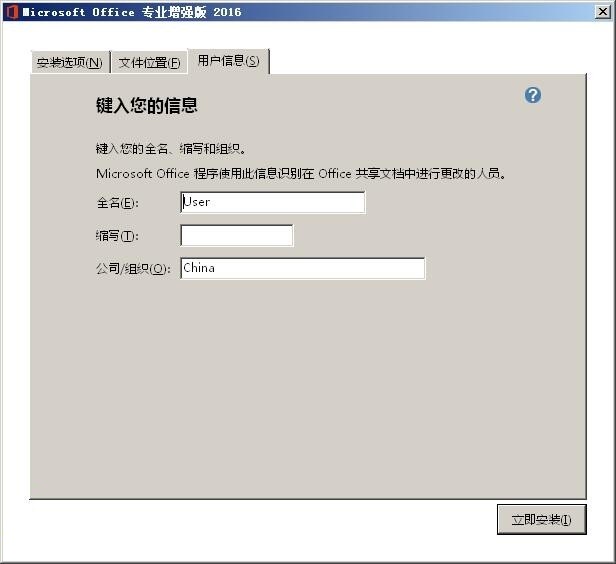 7、点击用户信息可以自定义一下安装的用户名、组织等