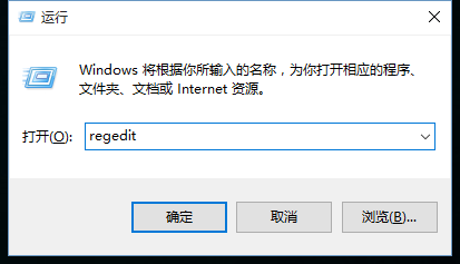 2、在[运行]程序中输入“regedit”,点击确定后打开注册表。