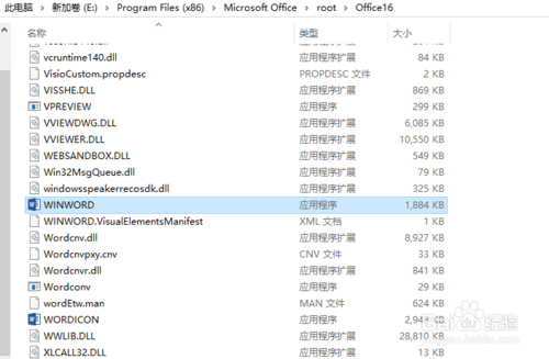 9、如果遇到这种情况可以去office安装目录下寻找相应程序,建立新的快捷方式到开始菜单。比如我的目录为:E:\Program Files (x86)\Microsoft Office\root\Office16。