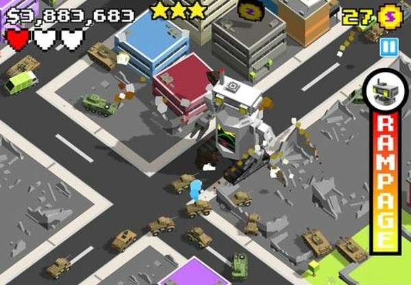 《摧毁城市 Smashy City》是一款像素风格的游戏。玩家需要操作身体巨大的各种动物形态的怪兽去摧毁城市,在军队的追杀下尽可能的造成最大的破坏以获取较高的分数。