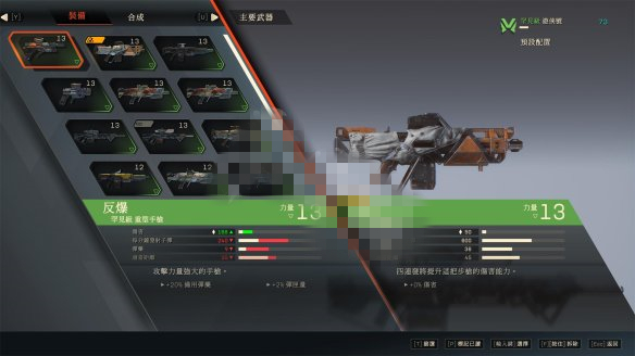 ★武装系统分为突击发射器,武器,手榴弹,配件,辅助装备,其中武器可以携带两把。