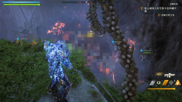 2、连击系统:简单来说你需要一个起手技(比如喷火)来让敌人陷入特殊状态(俗称点燃),目前有四种,燃烧,冰冻,带电,腐蚀。然后一个引爆技(比如破片手雷、迫击炮等)来引发连击(一般是呈现为爆炸的形式)。注意起手和引爆可以不是一个玩家,也就是说,只要敌人被点燃了,谁来引爆都可以。