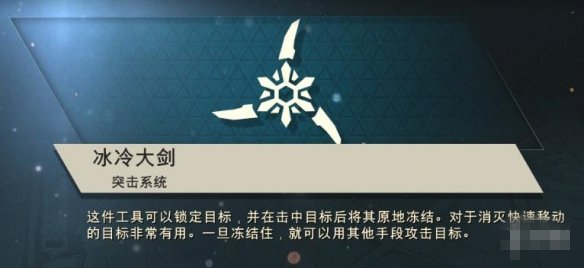 武器的选择是根据副本而定,你也可以根据自己喜欢来带,突击系统我用的是冰冷大剑,因为冻冰敌人后,就是自己为所欲为的时候了(注:带盾的怪,要先用其他技能或武器把盾打掉,再上冰冷大剑,才能起到依附效果)。