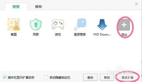 点击管理的选项之后我们依次点击右上角的添加更多扩展。