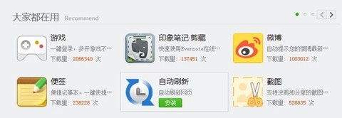 进入360的应用中心,需要添加某个应用,从界面点击该应用进入应用详情后,点击”添加到浏览器“。此时自动为你安装该应用。确定你要新增拓展程序。