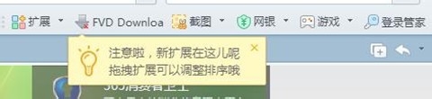 进入最新版的360浏览器,可以看到拓展在你的收藏栏的右边,点击一下你可以进入拓展管理界面。