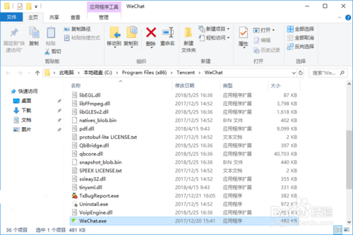 卸载完成后会有一些残留的文件在电脑上,我们可以找到微信的快捷方式到它的默认安装路径取查看