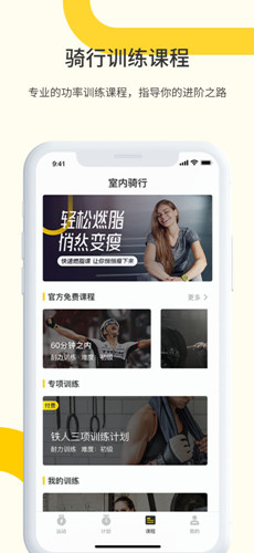 【课程】提供多种训练目标的功率训练课程,实时记录显示训练数据,更有专业的指导提示内容,帮助你达到训练目的。