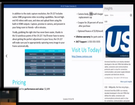 新的Insights引擎可借助必应的能力为Office带来在线资源,让用户可直接在Word文档当中使用在线图片或文字定义。当你选定某个字词时,侧边栏当中将会出现更多的相关信息。