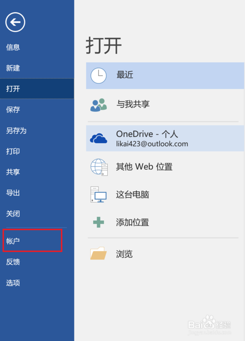 打开Word2016,然后点击“文件”>“帐户”,然后就可以查看Office2016的激活状态了。