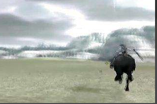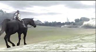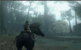 巨像战马,离巨像不远处有座坟丘,4个洞口,把巨像引到坟丘,进洞口等待,巨像在外面不断敲打,等它敲累了低头休息,顺它两条长长的耳坠爬到头顶弱点。如果头顶难立足,就退居后背休息一下,刺后颈一剑会使它低头,就可以返回头顶。