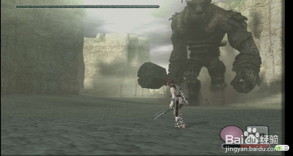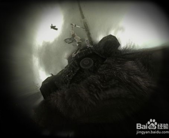 巨像破坏兽,当过场动画结束巨像向你冲过来时,你会发现你左侧有个倒了的柱子,爬上这个柱子,从柱子跳到桥上,再从这个桥跳到那个桥,最终你会跳到一个很高的柱子上。它穿过桥底,超出限高的我被刮掉,我爬到桥上,它撞完桥会昏厥,跳它后背猛戳弱点。