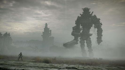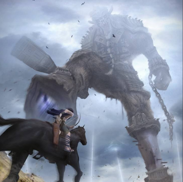 游戏故事讲述玩家所扮演的男主角青年 汪达(Wanda)为了拯救少女MONO的性命,偷了族里的神剑“往昔之剑”,带着因被诅咒而被夺去灵魂的少女的遗体,骑上爱马“阿格罗”前往边陲的“往昔大地”,寻找传闻中能令人死而复生的神秘之术。当汪达抵达传闻中的神殿,将少女遗体供于祭坛之上后,天际响起了多尔暝的声音,告知汪达如果想要让他复活少女的灵魂,就必须破坏神殿中的十六座石像。但那是人类的力量所不能达到的。唯一的方法,就是打倒隐藏于远古之地各处的十六个神秘“巨像”。当巨像被打倒后,与它们成对的石像也会被破坏。汪达与爱马阿格罗并肩作战,以手中的宝剑与背上的弓箭,与如同小山一般庞大的巨像们战斗,让少女重获生命。每打倒一个巨像,从巨像封印里冒出的黑线就会贯穿汪达的身体,钻入汪达的体内。而每一次汪达都会晕过去,当他醒来时,已经被多尔暝的力量送回了神殿,听多尔冥给他的下一个巨像的信息。汪达以为只要自己做好多尔暝吩咐的事情,女孩就会再次醒来,但是事实却是这样:一直被汪达当作神灵的多尔暝,其实是恶魔之王。他的灵魂被封印在十六只巨像体内,而他只是利用了汪达对女孩的感情,打败巨像只是为了解开自己的封印。从头到尾汪达只是被完完全全的利用了。结果,当汪达前往第十六只巨像的所在地时,阿格罗载着汪达跳上一座桥,在快跑到尽头时桥坍塌了,阿格罗为了救主人,将汪达甩到了对面。自己掉入了深深的山崖里。
