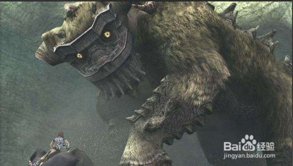 巨像兽王,场地内有一排一排的矮墙,巨像会踢碎它们。翻越这些矮墙来到场地另一端一排柱子底下,吹哨吸引巨像低头找你,跳到它胡子上。从胡子到胸毛,再到后背,弱点在头顶,血流一半后弱点转移到左肾部位。