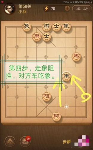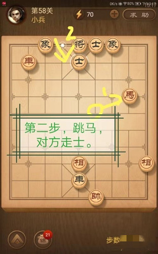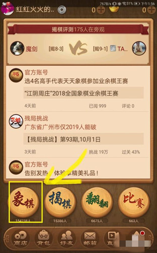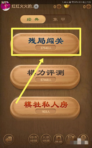 58关过关攻略打开天天天象棋手游,点击象棋,选择闯关,如图。