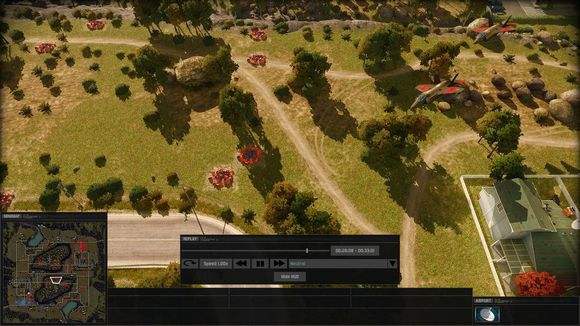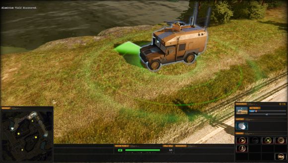 然而基地中并没有资源,四个资源点分散在地图的角落,周围都有一些敌兵防守,原有的铝矿可以用于制造武直,然而攻下西南面的资源点,将基地中的矿车调到那里,选中矿车,点击控制面板上的装货(pick up),再点击获得的资源建筑,最后点击自动分配,矿车就会把资源运到基地的仓库里,但其返回的路线刚好位于敌方进攻的公路,因此最好手动控制矿车。有了铝矿以后生产一些迫击炮兵、武直和防空车,用武直迅速攻下西面的基地,步兵占领那里的重型兵工厂,可建造主战坦克。敌方的主力部队会从北面的基地中不断进攻,开始只是步兵车之类,后期会出动空军、主战坦克、防空车、榴弹炮等,需要武直协防才能守住。