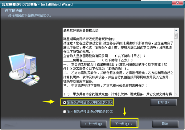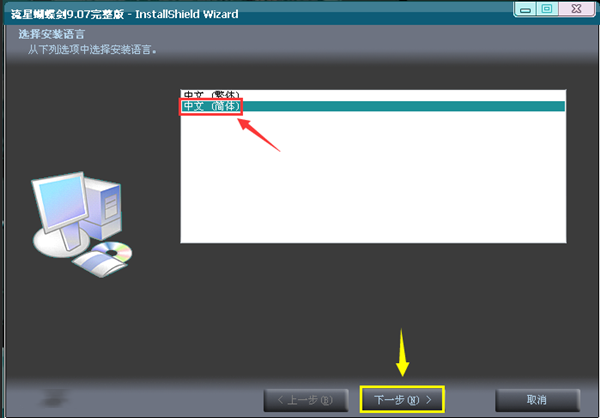 1、在本站下载流星蝴蝶剑9.07完整版软件包解压后运行程序,进入语言选择界面,选择中文简体,然后点击下一步