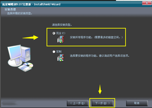 5、进入安装类型界面,选择完全安装,然后点击下一步