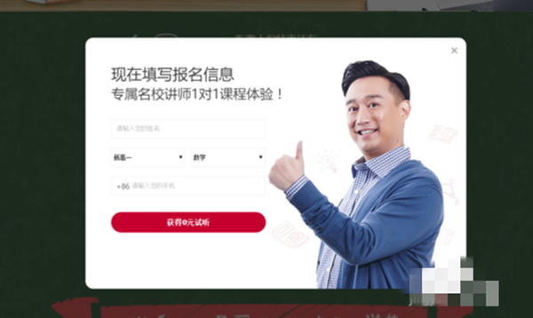 3.把孩子信息填写到掌门一对一官网中新弹出小窗口中。即可成功预约掌门一对一在线教育课程。