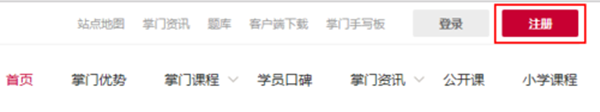 1.在百度浏览器上搜索“掌门一对一”并打开官网,在页面右上角点击“注册”按钮即跳转至注册页面。