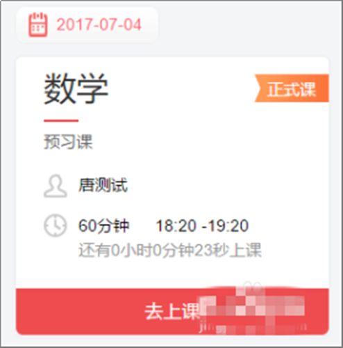 2.从上课页面进入。上课页面会按日期显示所有已排的课程,点击“去上课”即可进入该节课的课堂