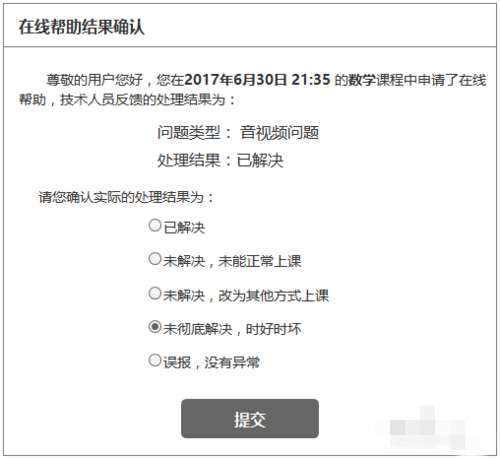 3.技术人员在处理完问题之后,客户端会收到技术人员反馈的处理结果,再由用户确认技术人员所选的处理结果是否属实。