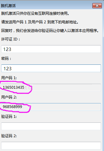 将生成的两组验证码【验证1、验证2】分别复制到步骤4的脱机激活窗口中,点击“激活”即可成功激活。