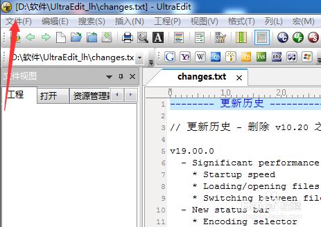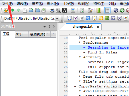 然后进行点击UltraEdit菜单中的“文件”的菜单选项。