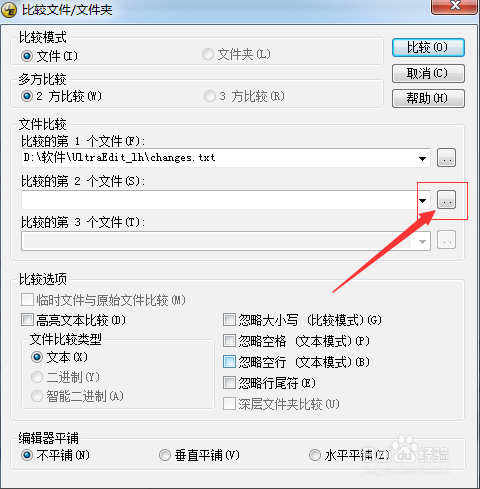 这样就会弹出了一个比较文件的窗口的界面当中,进行点击比较的第2个文件,点击浏览文件。