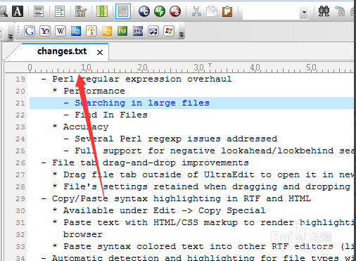 这个已经不是什么新奇的功能了,就连你们最不喜欢的notepad都有了这个功能。说来也奇怪,编辑器为什么都带有这个功能呢?谁愿意自己的编辑器带有水平滚动条啊?其实,非也,就本人的理解,UE编辑器默认的非换行功能是为了让某种语言的编译器(注意这里是编译器,而不是编辑器)能指出错误的精确行数,比如,如果编译器告诉你错误出现在187行,在UE下这是很好处理的,但如果在别的编辑环境下,你想到187行寻找恐怕就困难了,即使他有行号标记,但如果你强制换行了,那么他的行号可能就和编译器提示的完全不符了,因为编译器里提示的行号是根据回车的数目确定的,而一般编辑器的行号则是按照屏幕显示的行来确定的,这两者肯定不能划等号。