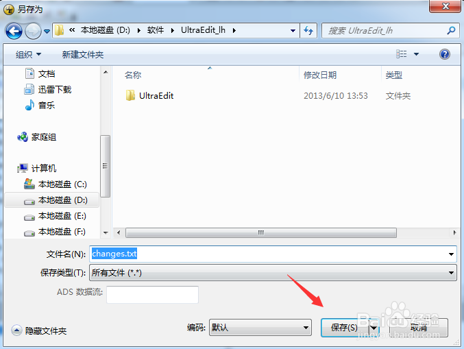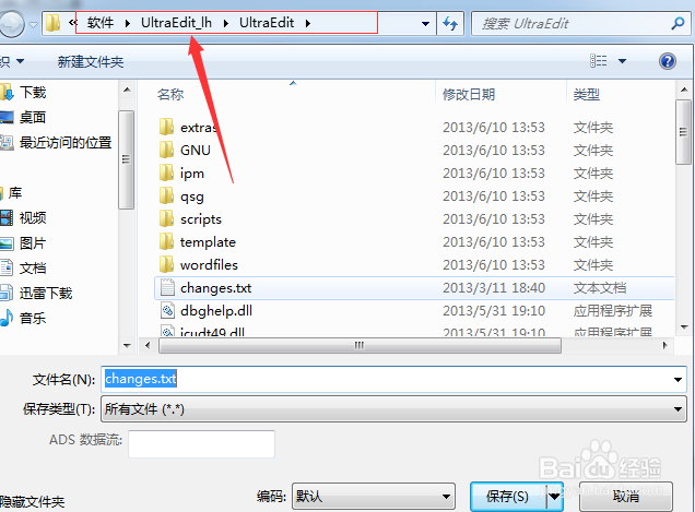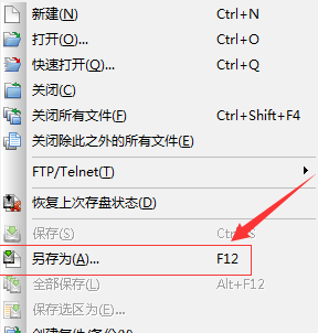 进行点击UltraEdit的菜单中,进行点击下拉菜单中选中为“另存为”的选项。