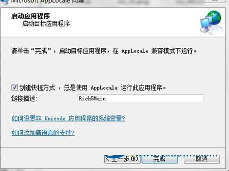 3、使用时运行Microsoft AppLocale,它会提示找到需要以兼容模式运行的程序,打开后就能正常运行,也可以创建相应的快捷方式,这不影响程序本身。