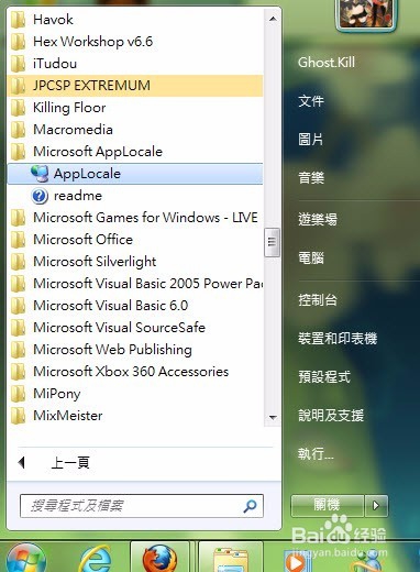 开始>功能表>所有程式>Microsoft AppLocale>AppLocale,如下图所示: