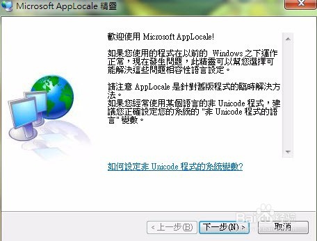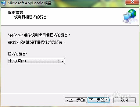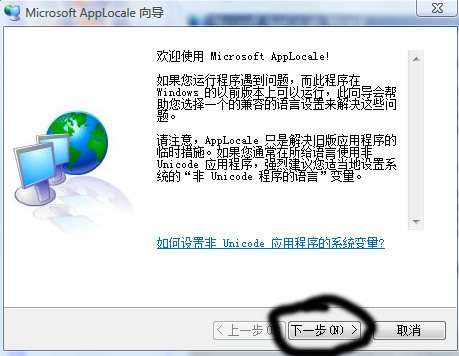 运行Microsoft AppLocale后,下一步 (N),如下图所示: