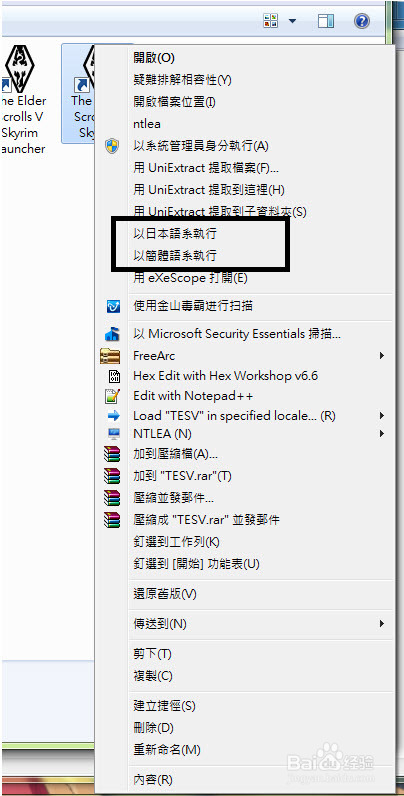 之后开启执行文件(EXE)右键选单,将会有"以**语系执行"选项,选择选项后即可,如下图所示: