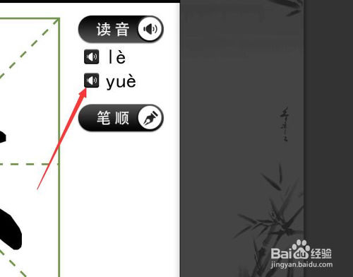 6.由于这个字是多音字,就出现两个拼音,依次单击它们,就可以学会不同的读法。