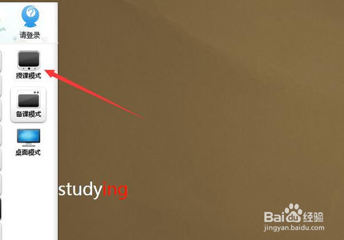 2.选择授课模式。虽然在备课模式下也能使用这两个工具,但是通常是在授课模式下使用聚光灯和放大器工具的。