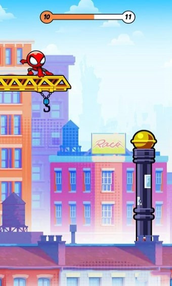 一款轻松画风的有趣休闲手机小游戏,精美的游戏场景,游戏操作简单,玩家只需要帮助那种蜘蛛侠躲避车辆和其他障碍物即可,他走的越远,你的得分越高,赶紧用起来你灵活的手指收集更多礼物吧!游戏中玩家需要将蜘蛛侠控制起来,利用它的蜘蛛丝来进行跳跃和行走,在这个过程中玩家是可以用你超凡的技术绕过障碍物的哦!