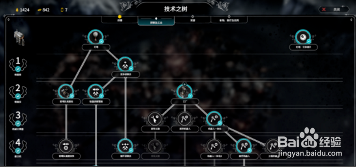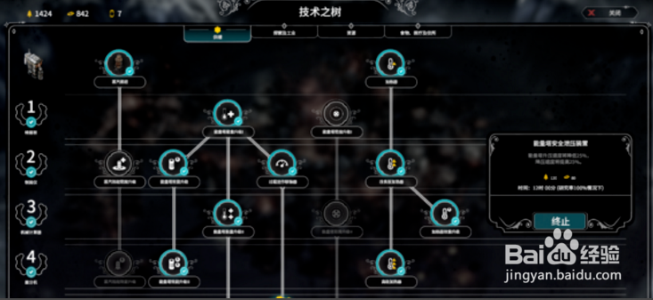点的科技不多,实际上到通关为止我也只有4个工作站在运作,满级科技直到游戏结束前才解锁,为的是三级能量和满级煤矿,供暖点了蒸汽枢纽、蒸汽枢纽范围升级、和能量塔的三级能量升级。(没错,没点效率也没点加热器)探索只点了三点,点到了三级科技的轻量侦察雪橇。
