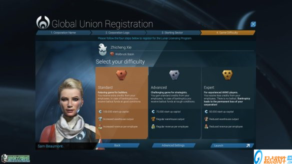 接下来就是选择游戏难度了。在不同的难度里你的初始资源和一些挑战项目的数目要求也不一样。在开始接触游戏时还是尽量选择最低的难度,循序渐进的进行游玩吧。
