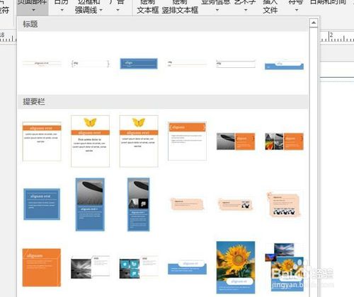 特色之处:在插入栏中,有一个”构建基块”提供了很多广告,宣传的模板供客户来使用.