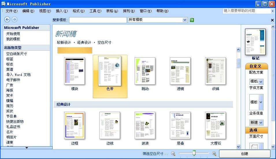 4、Publisher被包含在高端的Microsoft Office版本中。这反映了微软对Publisher的定位,它是一款易用的,相比于那些重量级产口而言价格适中的产品,它的目标用户主要是那些没有专业人员制作市场推广材料以及其它文档的中小型企业。